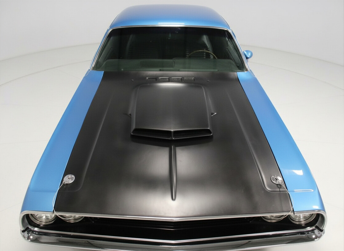 This Challenger T/A is a rotisserie-restored classic with numbers-matching 340 V8 and Six-Pack setup, paired with a TorqueFlight automatic transmission. Power steering and power brakes provide confident handling, while the front disc brakes add extra stopping power.
